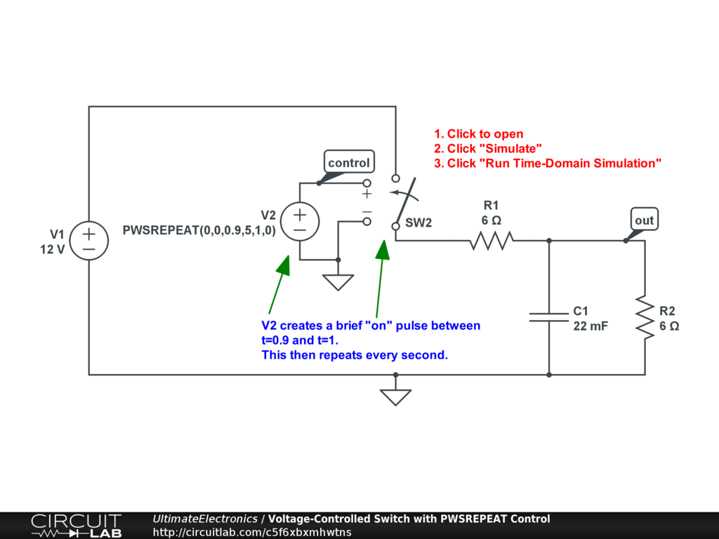 Some “toy” simulators will allow for interactive clicking of buttons and switches during a simulation, but beyond the very earliest learning stages, these interactive simulations have no real-world applicability. Simulations should be designed for controlled repeatability, where we can understand the effects of making changes in our circuit, which calls for a repeatable way of controlling switches.